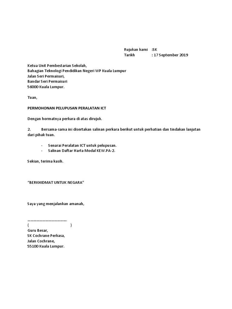 Contoh Surat Permohonan Pelupusan Aset Pdf
