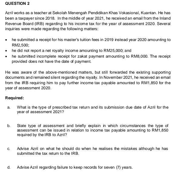 Question 2 Azril Works As A Teacher At Sekolah Chegg Com